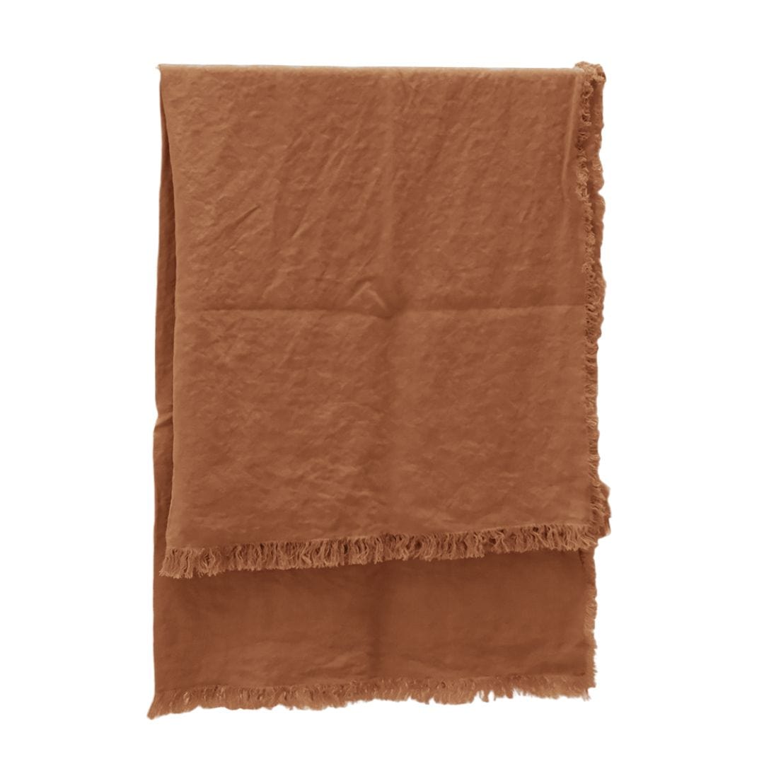 Jeté en lin (140x180cm) couleur sucre brun avec bords frangés . 100% lin.