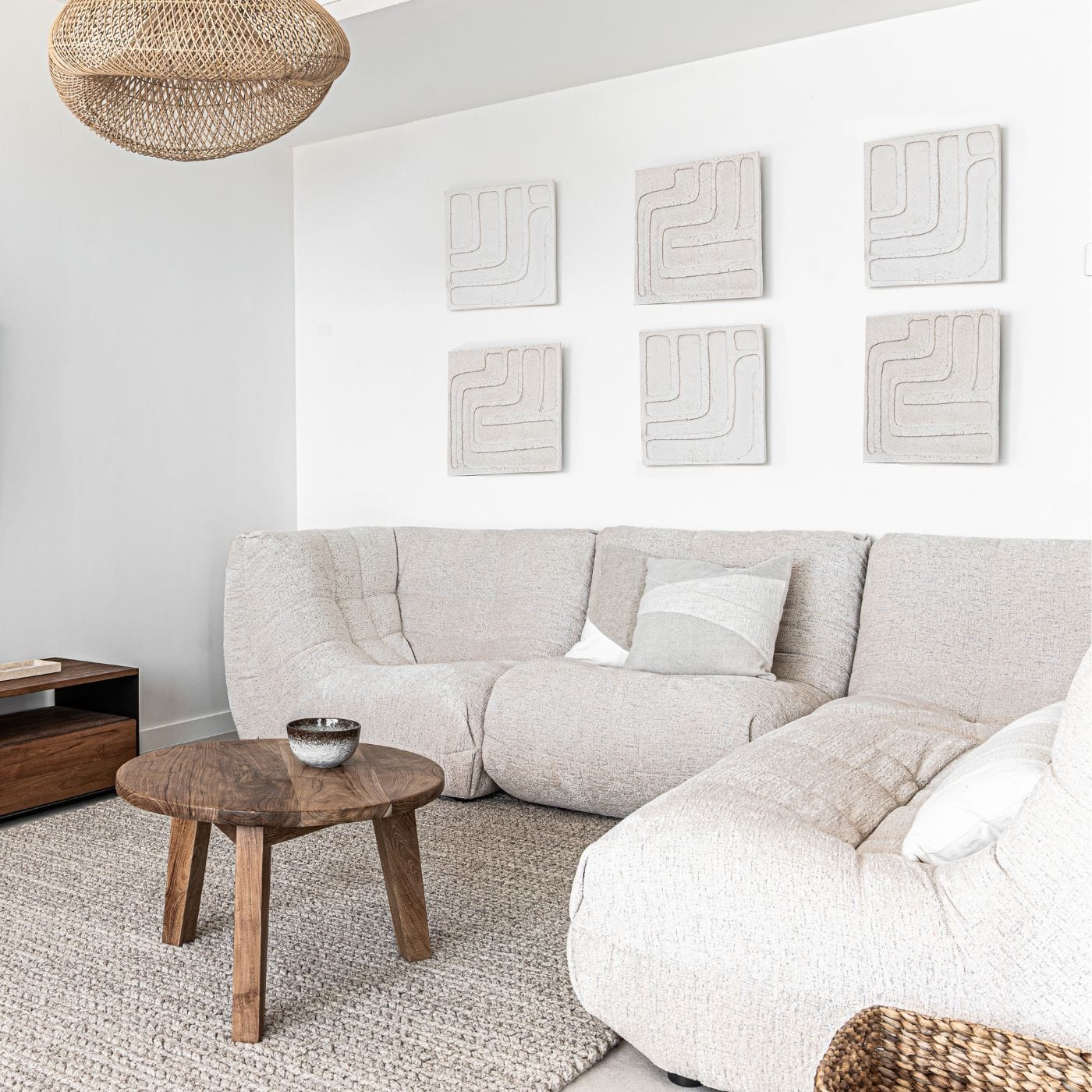 Offrez-vous la polyvalence du canapé modulaire Dune dans une teinte beige apaisante.