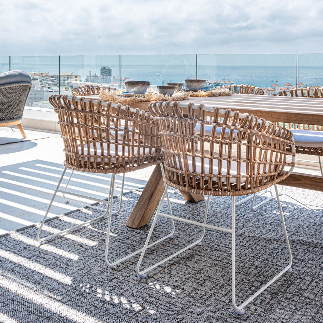 Entourez votre table d'extérieur avec ces superbes chaises en rotin et réunissez vos amis et votre famille.