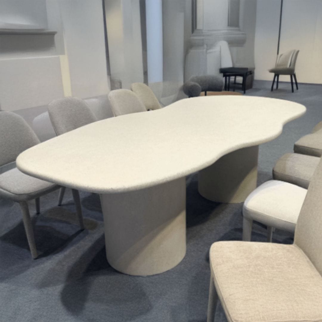 La table à manger Lynea redéfinit la salle à manger moderne avec sa présence audacieuse et son design sculptural. Fabriquée en ciment massif, ses courbes organiques et sa silhouette fluide créent une pièce maîtresse à la fois apaisante et raffinée.