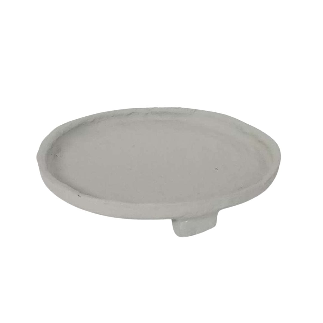 Plateau décoratif (21 x 4,5 cm) en coton mâché blanc cassé avec pieds bas . Léger et artisanal.