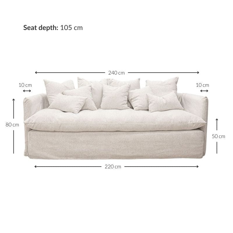 Largeur : 240 cm Profondeur du canapé : 105 cm Hauteur : 80 cm |
