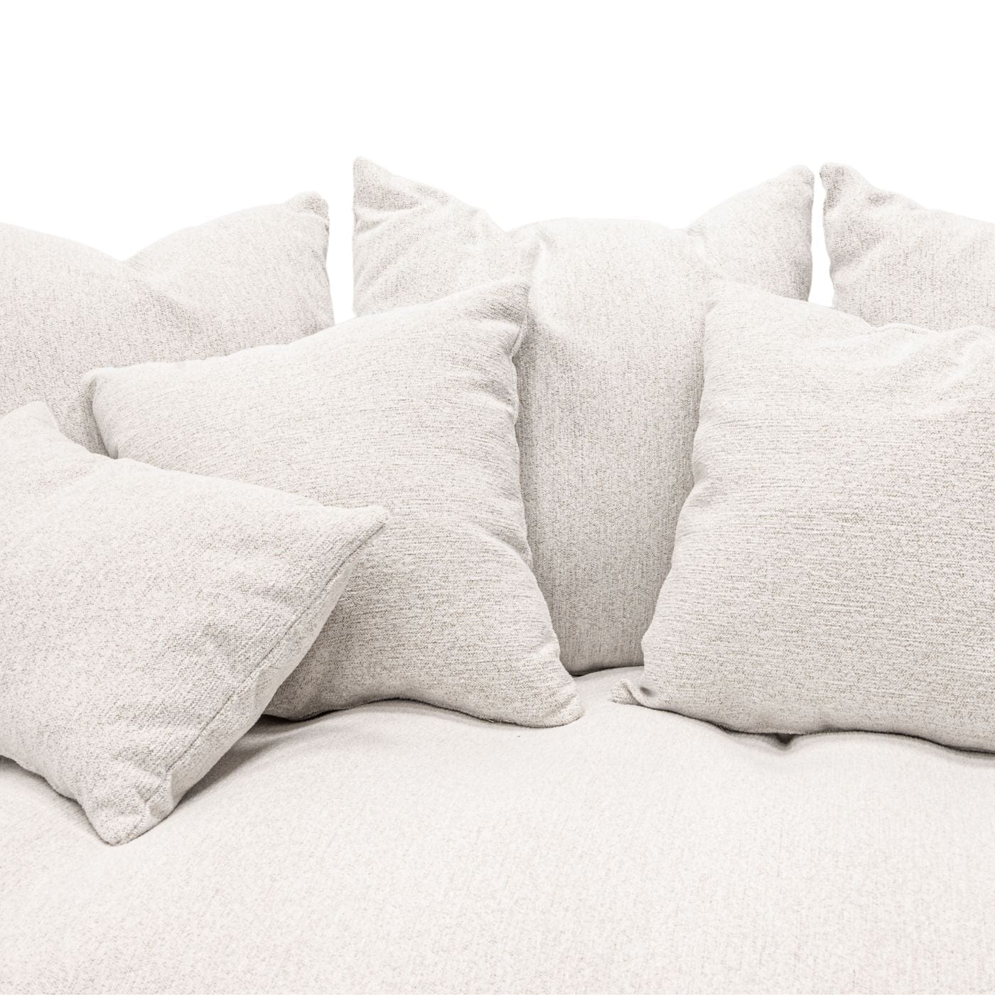 Modèle Tarifa Decor Pillows : canapé 3 places (240 cm) recouvert de tissu Vibe , coloris Sandwhite . Un textile résistant et facile d'entretien, fabriqué à partir de fibres recyclées. Comprend un ensemble complet de coussins assortis. Déhoussable. Fabriqué à la main en Espagne.